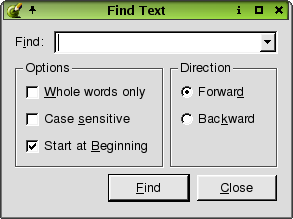 The Edit Text dialog is invoked by right-clicking the following widgets: TextEdit, TextLabel, and PixmapLabel and selecting Edit Text.