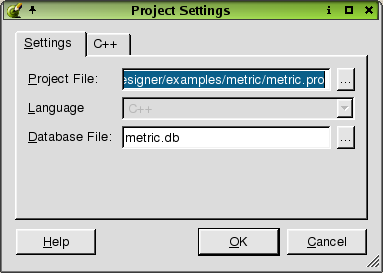 Click C++ Project to start a new project. This option invokes the Project Settings Dialog. C++ projects are saved as .pro files, which include the information TQt Designer needs to manage projects. When you add a form to your project in TQt Designer, it is automatically added to the FORMS section of the project file. The .pro file contains the list of forms (.ui files) used in the project. TQt Designer reads and writes .ui files, e.g. form.ui. The tquic (user interface compiler) creates both a header file, e.g. form.h, and an implementation file, e.g. form.cpp, from the .ui file.