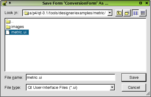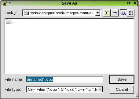 If you do not want TQt Designer to handle the images, (or are not using a project) choose either 'Save Inline' or 'Use Function'. 'Save Inline' saves the pixmaps in the .ui files. The disadvantage of this approach is that it stores images in the forms in which they're used, meaning that images cannot be shared across forms. Click 'Use Function' to use your own icon-loader function for loading pixmaps. Type the function's name (with no signature) in the 'Use Function' line edit. This function will be used in the generated code for loading pixmaps. Your function will be called with the text you put in the pixmap property (e.g. the image name) whenever an image is required.