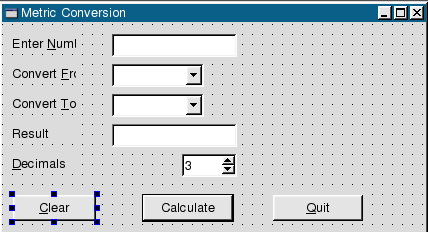 Change the form's name (in the Property Editor) to "ConversionForm", and change its caption to "Metric Conversion".