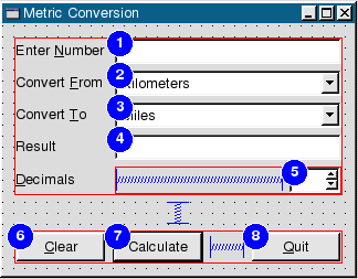 This chapter provides a quick start for users of TQt Designer. The chapter takes you step-by-step through the creation of a small dialog-style metric conversion application. It introduces many of the common tasks users perform when creating an application: adding widgets to a form, setting widget properties, making connections between signals and slots, laying out widgets, and adding custom code. This chapter only covers a portion of TQt Designer's functionality; explanations and details are mostly left for the more detailed colortool tutorial presented in chapters two and three.