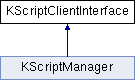 To implement KScript in your application you would use this class to interface with the scripting engine. There are currently a few implementations of script managers around but developers can implement their own custom interfaces with this class.
