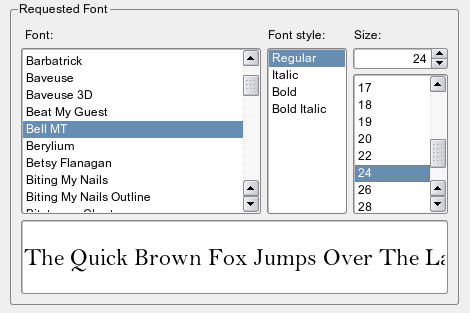 FamilyList- Identifies the family (leftmost) list.StyleList- Identifies the style (center) list.SizeList- Identifies the size (rightmost) list.